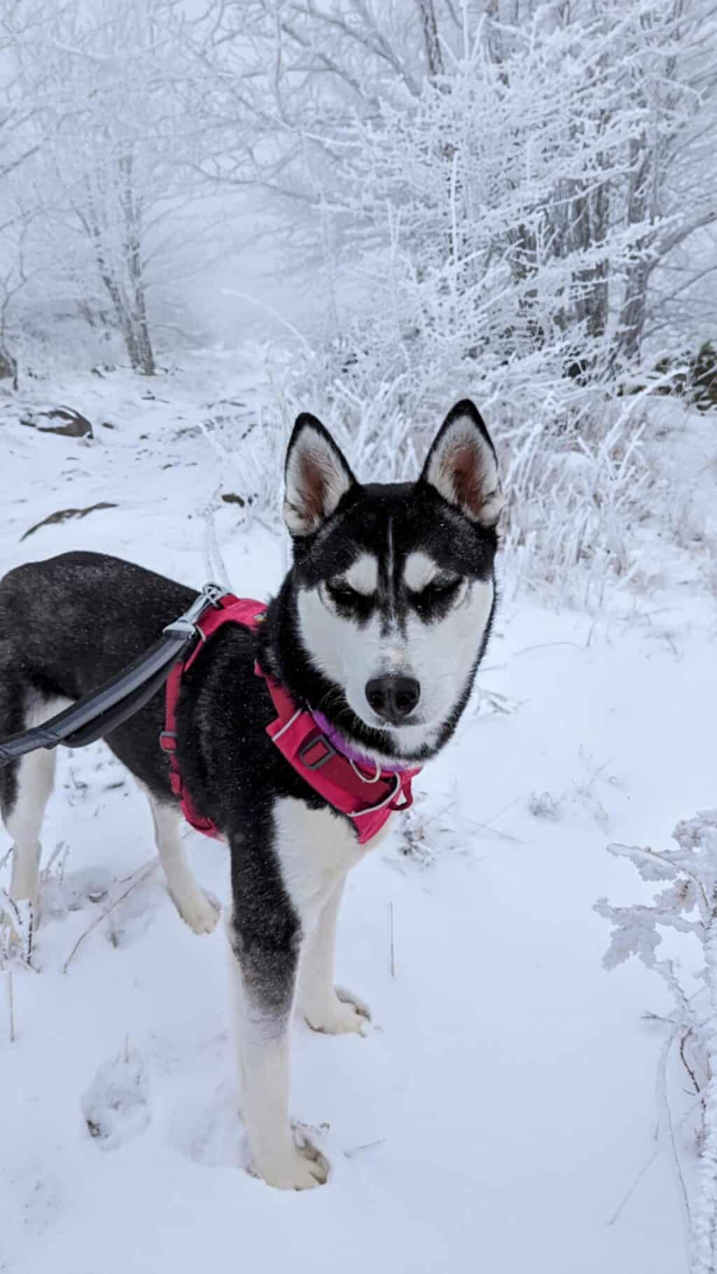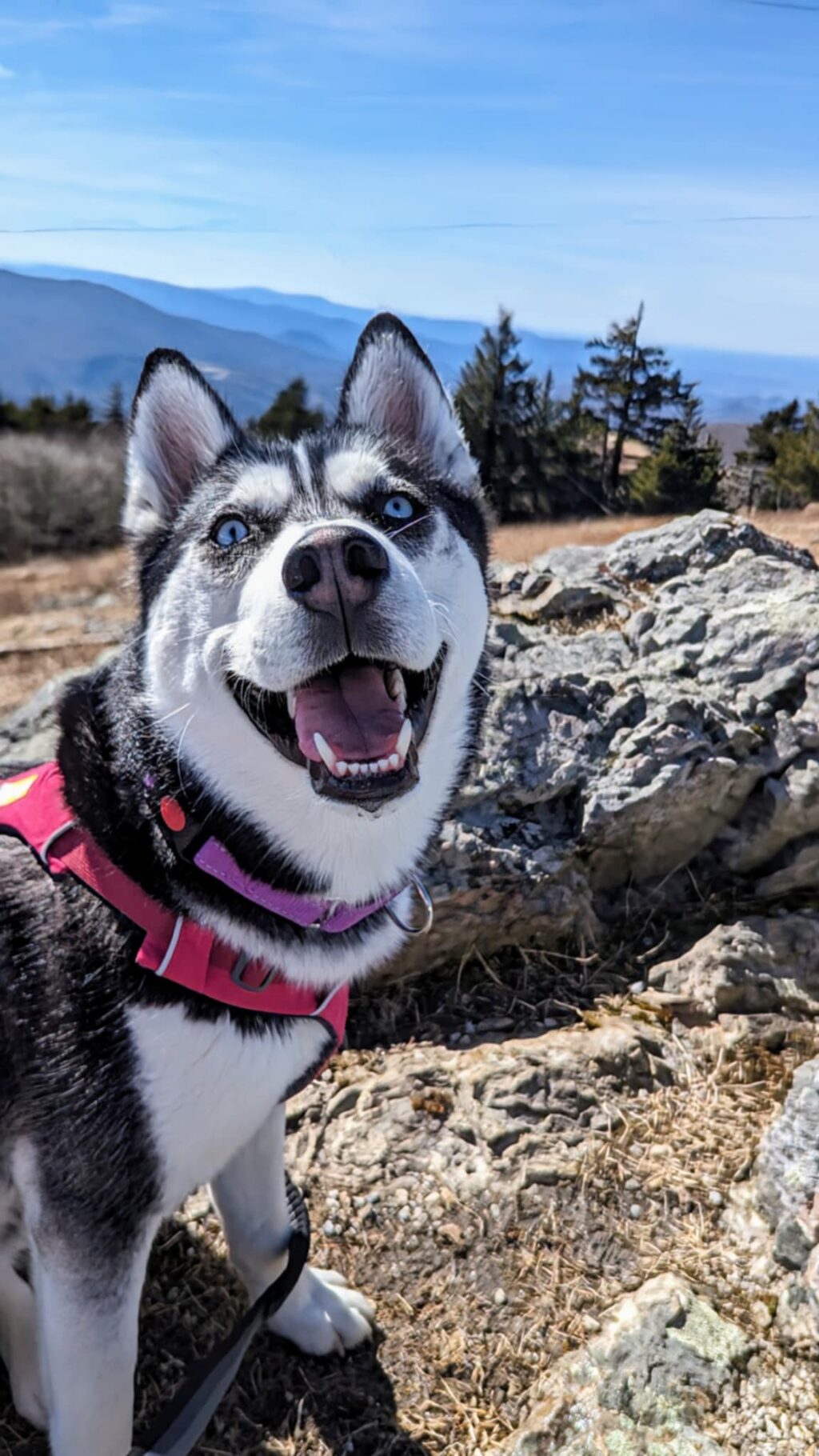 We are also hoping to possibly get in all the State Parks in Virginia and become master hikers. Grayson Highlands, Whitetop, and Elk Garden are our go-to places. I do have one memorable moment, but it’s rather embarrassing to tell. We were out hiking on the Virginia Highlands Horse Trail. Mother Nature called, so we stepped off the trail, and she decided to do a zoomie at a moment she should not have, and I ended up in the snow. She loves squirrels too, and there was an incident where she spotted one, and when we got to the tree that it ran to, she climbed the tree. She is such an amazing friend to me.