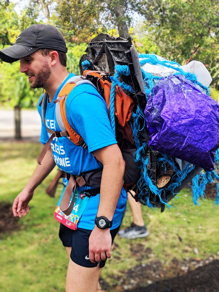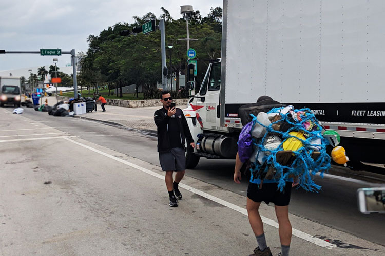 Over the span of a year, I removed over 6,500 pounds of trash. This brought some attention to the issue of marine pollution, but I wanted to quite literally bring it out of the mangrove swamps and show it to all of South Florida. So, I asked an architect/designer named Daniel Alonso (from OA Architecture) to help me build a 30 lb bag of trash that I could carry throughout the length of the Miami Marathon. I then partnered with Miami Waterkeeper, a fantastic local non-profit that protects our coastal ecosystems, to turn my endeavor into a fundraiser for their efforts.
