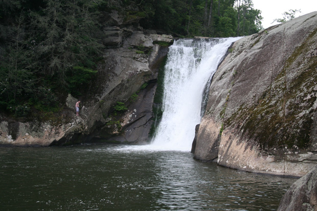 Elk River Falls is one of the best swimming holes in Pisgah National Forest, with a high waterfall, deep pool, and plenty of rocky cliffs from which to leap. Flat rocks all around, a short access hike, and a generally scenic atmosphere only add to its reputation. It is no wonder Elk River Falls is one of the more popular destinations to cool off on a summer weekend. Beat the crowds by getting there early or hitting it on a weekday.