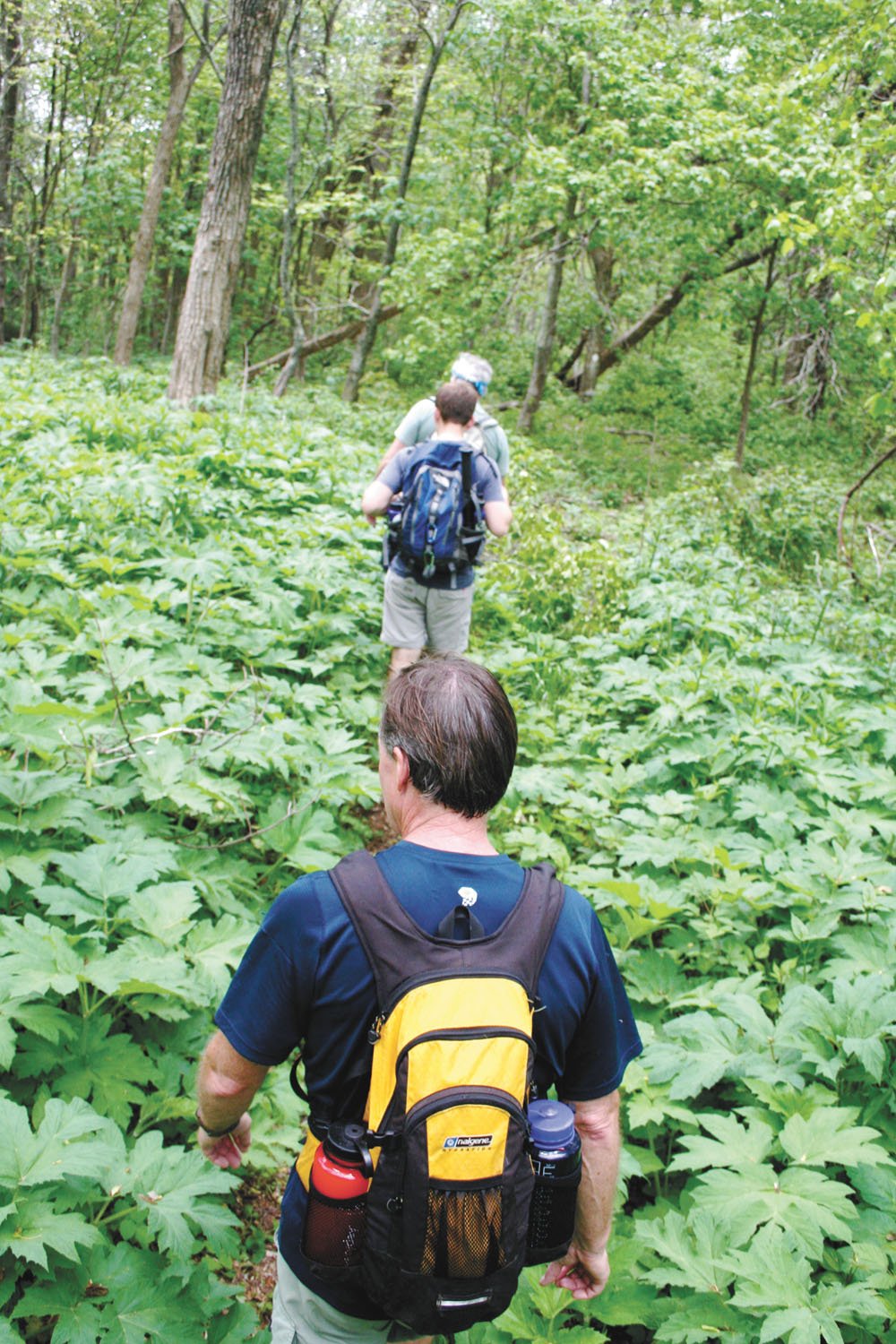 I don’t fully appreciate the value of the Upper Bald myself until several hours into our hike. We haven’t crossed paths with anyone except boars, bobcats, and birds. And the only sounds I’ve heard—aside from our own hushed voices—are water and wind. I’m elated knowing that I am as far as I can reasonably get from the nearest car or television, that I am immersed in a forest that is as pristine as one can get in my part of the world. •