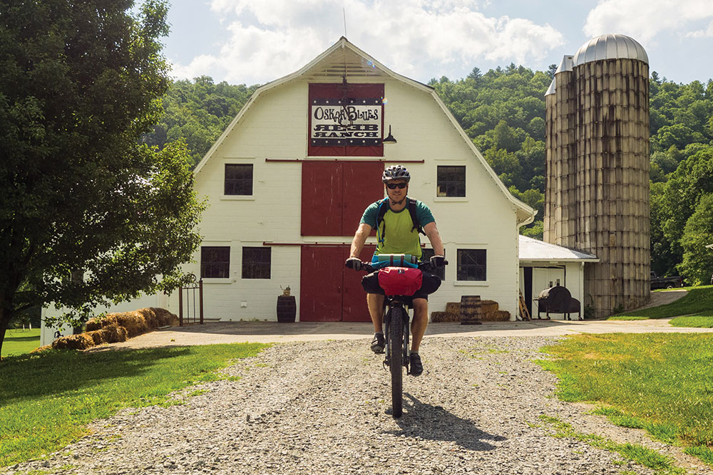 At Bennet Gap, we pushed up some rooty stairs and rode a final mile to the three-sided shelter we’d call home for the night. Boberts set up his hammock inside, and I pitched my tent in the grass. While Boberts expertly built a fire, I tied parachute cord to a rock and hurled it—for what felt like an hour—until I could barely lift my arm and we finally had a bear bag. Camp chores complete, we lounged in hammocks and sipped on ice cold Oskar Blues beers.