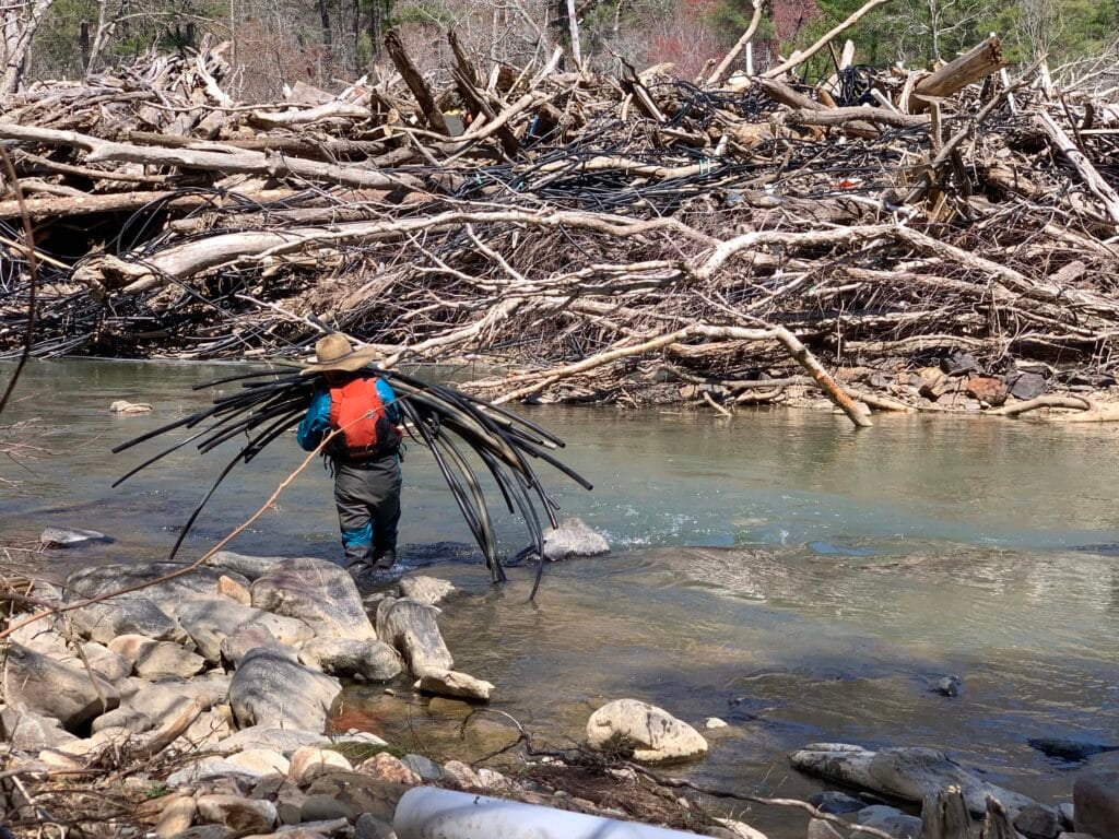 Since spring, MountainTrue’s crews have combed the rivers by hand, pulling out everything from twisted metal to PVC pipes. They’ve also unearthed more personal items—from a coffee mug to a baby’s photo album—and, when possible, returned them to their owners.