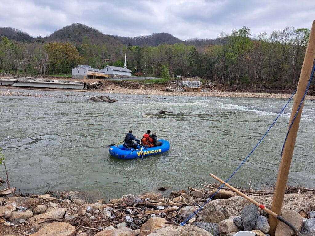 That pivot came in the form of a partnership with the Appalachian Trail Conservancy. Backed by donations to the A.T. Resiliency Fund, Johnson and his small staff provided a free ferry service after the Chestoa Bridge—the A.T.’s main river crossing—was washed out. From 9 a.m. to 2 p.m. daily, guides rowed rafts across the Nolichucky, ferrying nearly 2,000 A.T. thru-hikers across the swollen river.