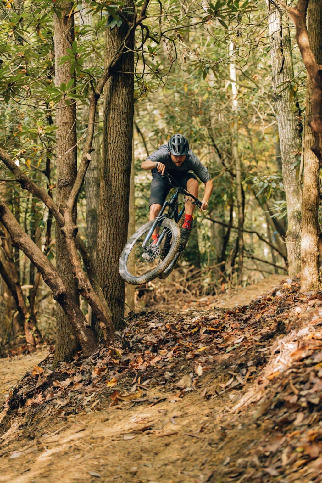 Located just a mile from downtown, Unaka Bike Park features more than 10 miles of trails and 700 feet of elevation change. When Helene tore through the region, its location on the leeward side of the mountain sheltered it from the worst winds, leaving only minimal damage. “We had trees cleared off within a couple of days, and every trail was rideable,” says Joseph Wigington, president of the affiliated nonprofit.