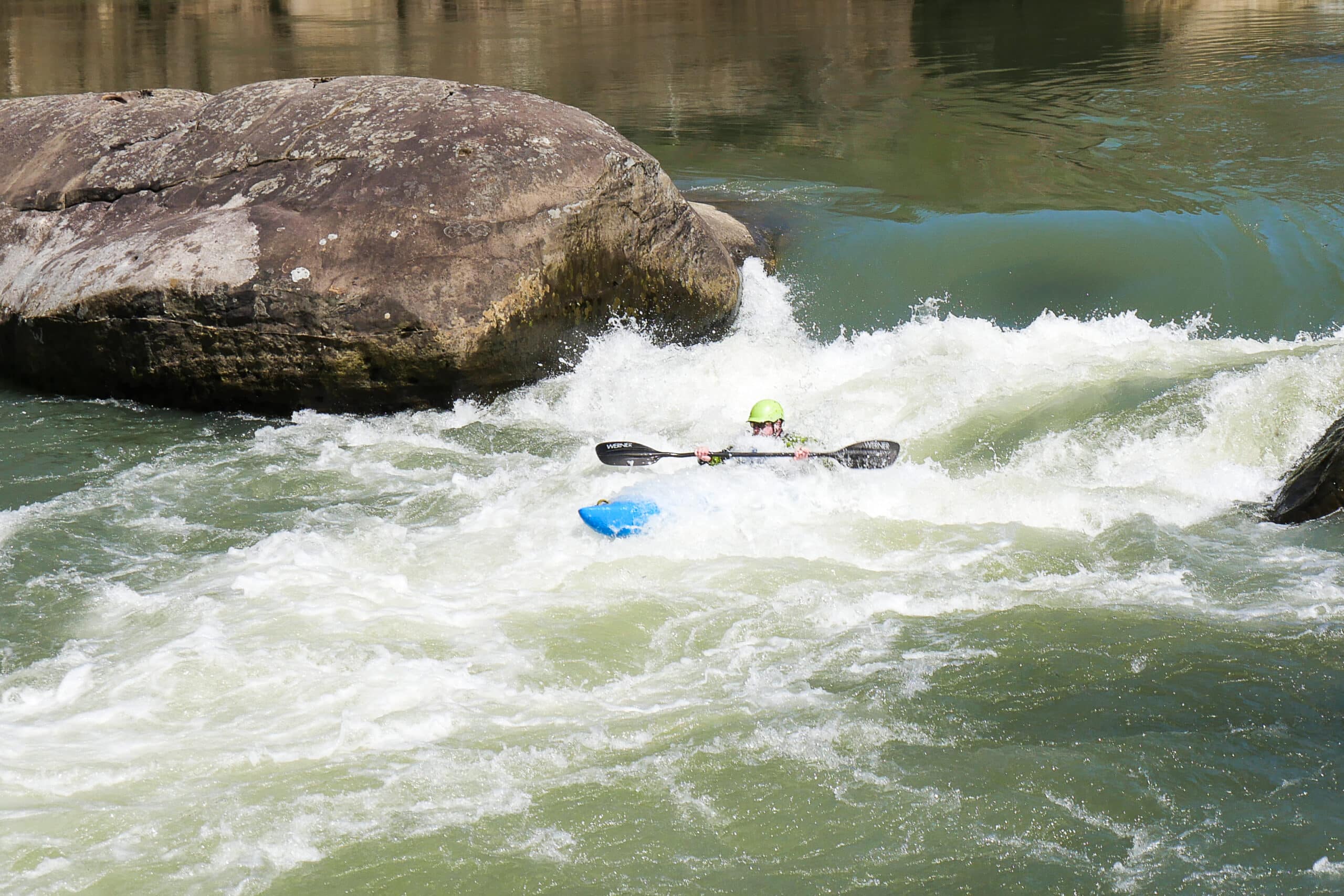 After nearly a mile of read-and-run class II+, I was feeling confident when we reached the “big three.” We skirted the steep Double Drop on the far left before punching through holes in Washing Machine and The Ell. My boat was edgy and riding low in aerated water, but by staying straight and paddling hard, I eventually resurfaced.