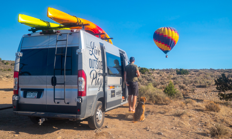 It’s proximity to both mountains and desert make Taos a fun place to camp. You can experience both flat and spacy desert camping and classic Rocky Mountain alpine camping in a single weekend. There are several free established and dispersed camping areas on the road from Taos up to Taos Ski Vally. The sites were close to the road at times but they were shaded and next to a creek. On the west side of Taos, there is ample BLM land that allows free dispersed camping as well. We found a great spot right on the rim of the Rio Grand River. It’s hard to beat the stars in the desert. It’s no wonder there are so many alien sightings in New Mexico… In the morning we woke up to the most amazing sunrise and a hot air balloon taking off only about 100 feet away. It was a good way to start the day.