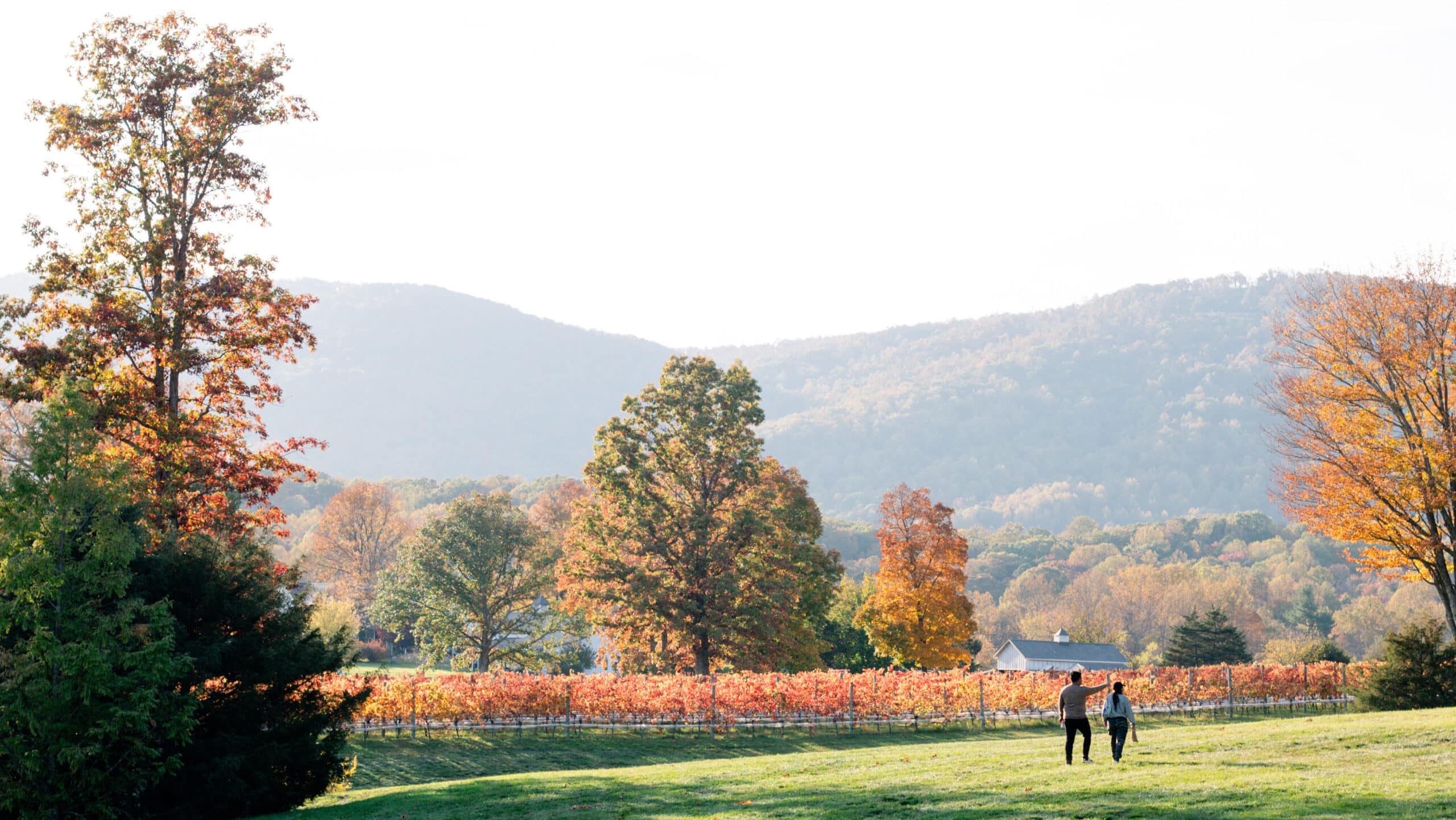 In autumn, our vineyard becomes a painter’s palette and a photographer’s playground. While strolling the property, you’ll find countless photo-worthy moments: sunlight coming through the vines, a glass of wine catching the light, and The Farmhouse framed by the rolling foothills.